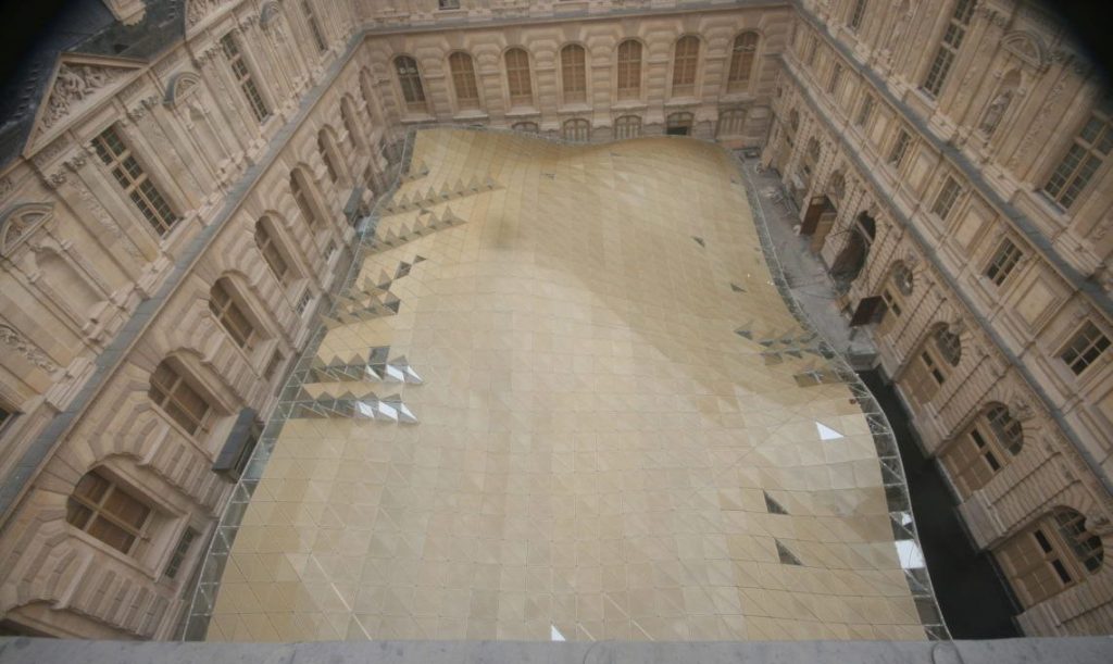 گالریهای هنر اسلامی در فضای Cour Visconti، در قلب موزه لوور قرار گرفتهاند. طراحی معماری این فضا توسط ماریو بلینی و رودی ریچوتی انجام شده و شاخصترین عنصر آن، سقف شیشهای با پوشش فلزی موجدار است که همچون یک سایبان نورانی، فضای داخلی را در بر میگیرد.